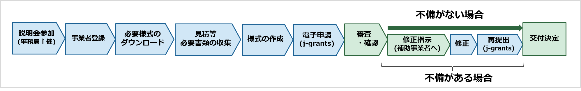 交付申請後、補助金事務局より修正指示がある場合は交付決定が出るまで修正の対応をいたします。